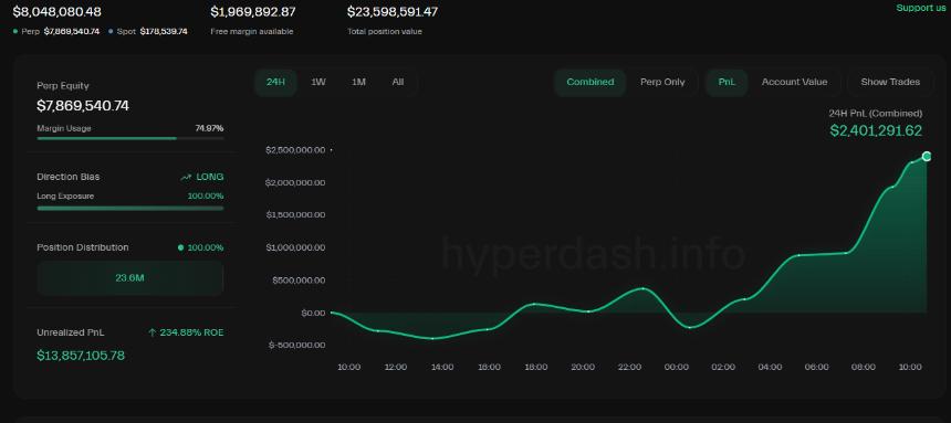 HYPE价格飙升至44美元以上,杠杆巨鲸实现巨额收益 币圈网报道: 随着HYPE创下历史新高,超流动性(Hyperliquid)继续成为2025年加密市场周期的关键叙事之一。周一,HYPE交易价突破44美元大关,吸引了BTC押注和直接买入的双重关注。 HYPE持续反映了Hyperliquid平台使用率的快速增长,并引发了其价格可能突破三位数的广泛猜测。...