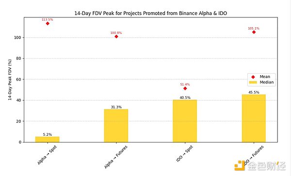 多数渠道的14天FDV中位数为负,表明上线即估值高点;