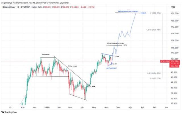 分析师预测:比特币双重看涨模式或推动价格飙升至167,000美元 币圈网报道: 著名加密货币分析师(化名 X Plan D)近日分享了一项引人注目的预测,基于同时形成的两种看涨图表模式,他认为比特币的价格目标有望达到167,000美元。 值得注意的是,随着中东地缘政治紧张局势再度升温,比特币市场近期波动剧烈。上周五,这一旗舰加密货币一度跌破10.3万美元,随后价格...